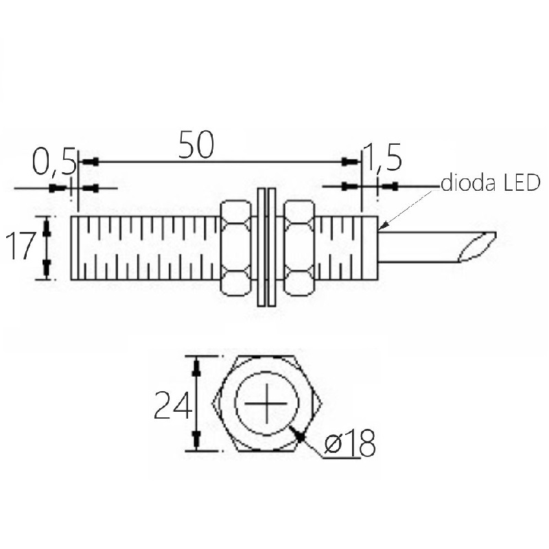Czujnik Zbliżeniowy Indukcyjny M18 (NC) Sn-5 ( 2-przewodowy ) 10-30VDC