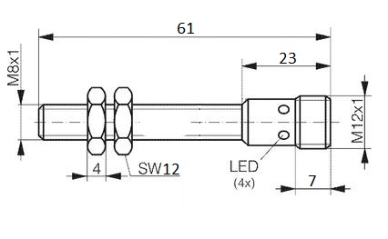 Czujnik Zbliżeniowy Indukcyjny M8 PNP (NC) Sn-2 Gniazdo M12