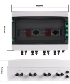 - Rozdzielnica do fotowoltaiki posiada wyprowadzone dławiki kablowe oraz złączki MC4.